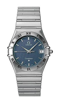 The Omega Men's Constellation Watch is a timeless classic updated for today's discerning man. A stainless steel band and stainless steel case with engraved Roman numerals on the stainless steel bezel set the tone for this fine timepiece. The watch also features an elegant blue-gray dial with luminous hour markers and hands, a calendar window that sits at the 3 o'clock, and a domed, scratch-resistant sapphire crystal coated on the inside with anti-reflective treatment. The Constellation runs on quartz precision movement and is water resistant to 167 feet.Available Stores